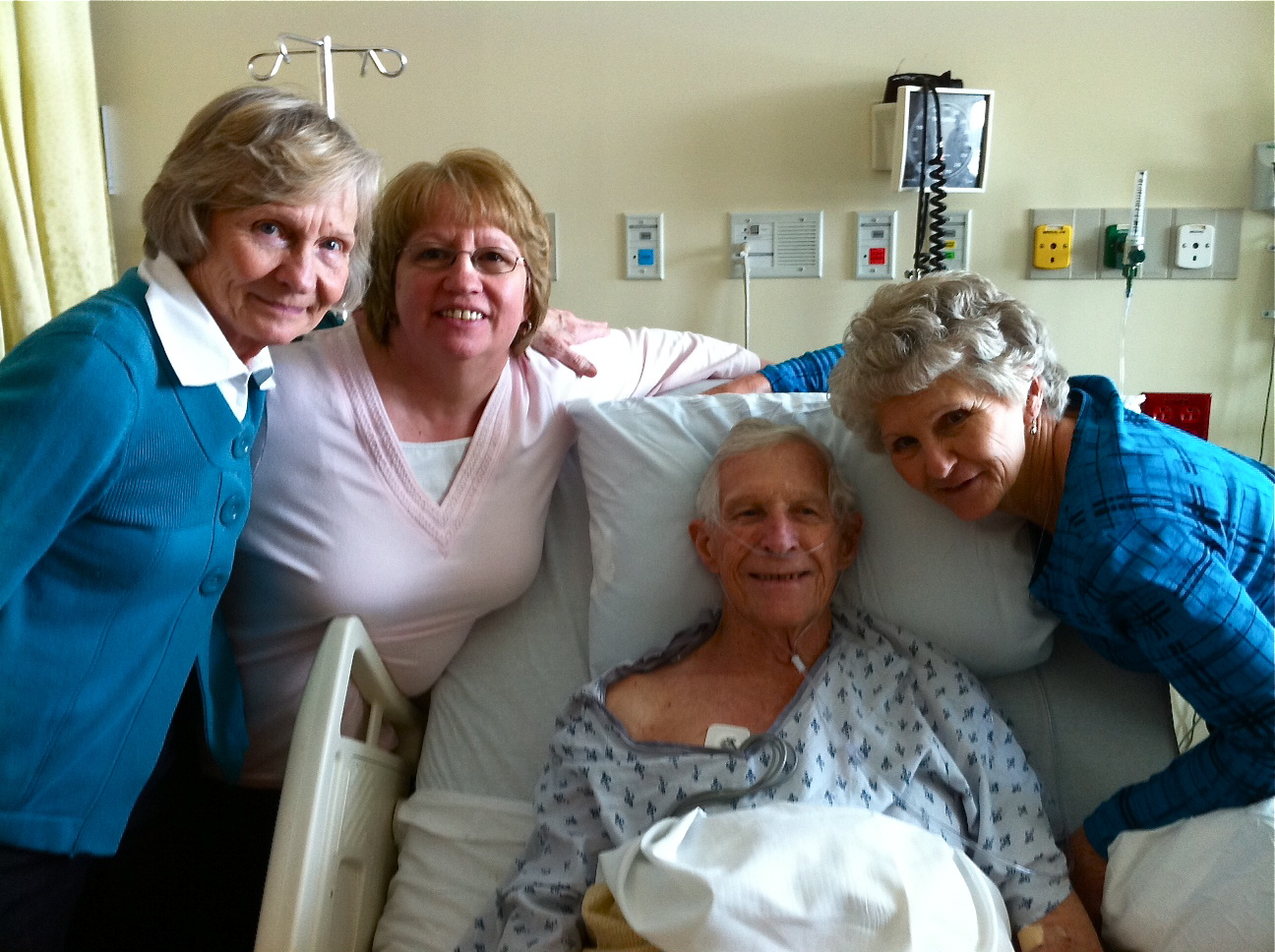 He was surrounded by family all weekend and as an added blessing, his 3 sisters from Missouri made the trip to Evansville to see him. This gave him a real spark. The doctors said that yesterday, Dad rallied. This was great news. This week is going to be very important as they continue to work on his lungs and prepare him for some procedures on his heart.